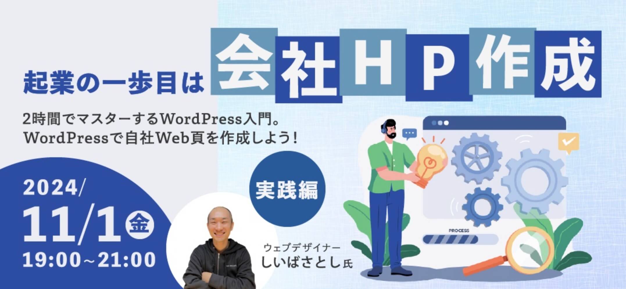 入門編にて、WordPressとは何かや基本操作などの基礎知識を身につけたうえで、2024年11月1日の実践編へと進みます。